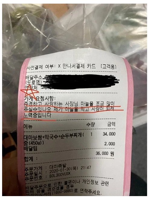 보쌈 집 주문자의 요청사항