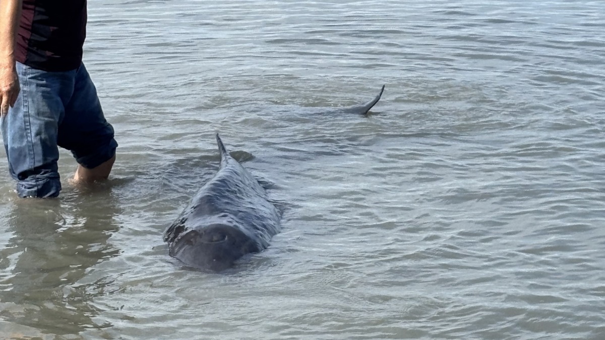 충남 서천군 해안가에서 꼬마향고래 모자가 발견돼 관계 당국이 합동 구조에 나섰다. 구조된 고래들은 무사히 바다로 돌아갔다.