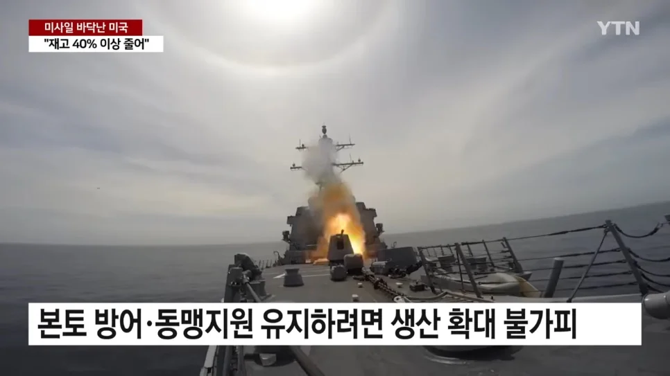 미군은 미사일 재고가 40% 이상 줄었다고 파악합니다.