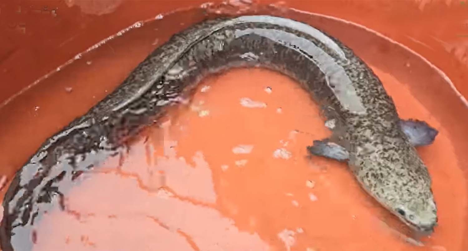 성인 남성 종아리 굵기... “얘는 요괴다” 압도적인 크기의 대형 장어 공개
