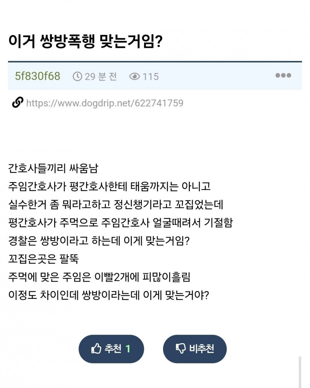 태움당한 남간호사가 여간호사 죽빵날림