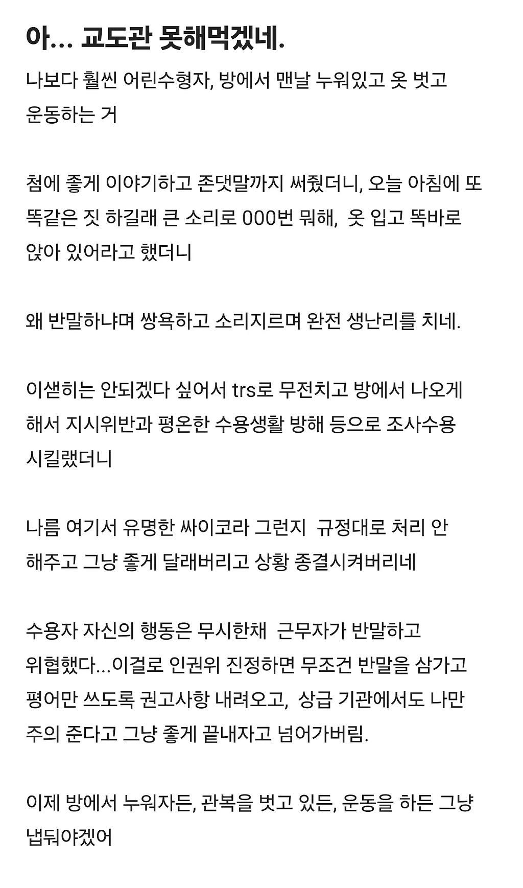 교도관 못해먹겠다는 블라인