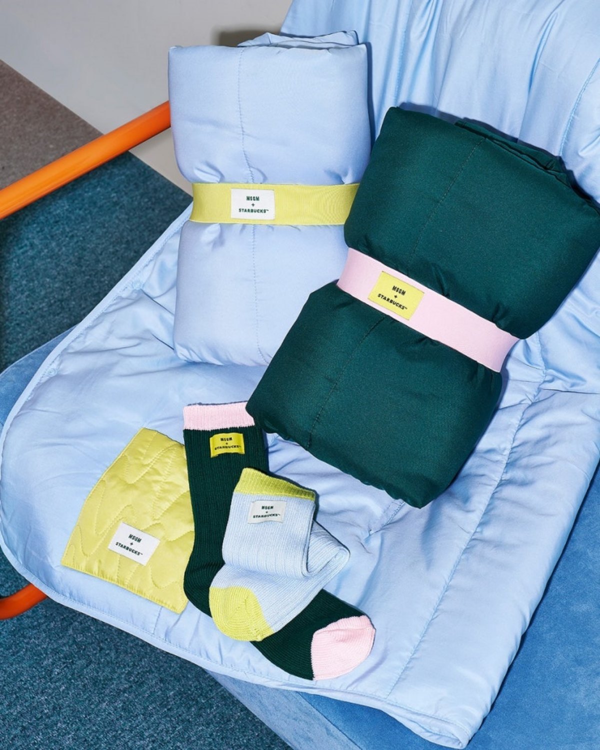 두 브랜드의 컬러를 담아 제작한 MSGM+스타벅스 블랭킷은 패션 브랜드와의 협업답게 무릎을 덮어 사용하는 방식 외에도 버튼을 채우면 마치 조끼처럼 착용할 수 있다는 점이 특징이다. 또한 포켓에는 MSGM의 시그니처 패턴과 컬래버레이션 로고로 포인트를 더했다.