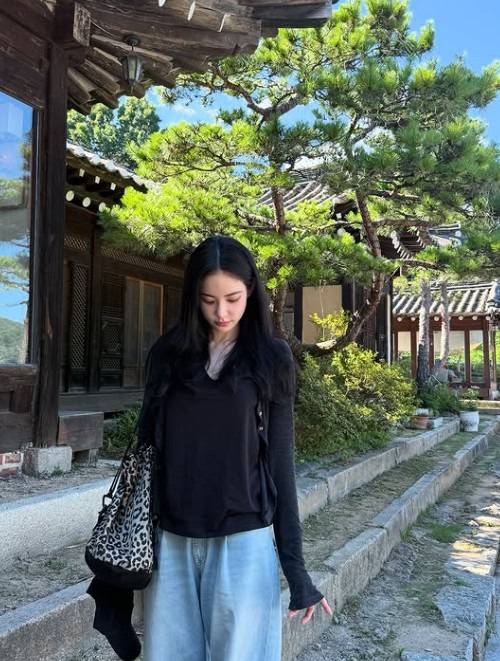 이너는 시선을 크게 뺏지 않도록 블랙과 흑청 데님으로 조합.