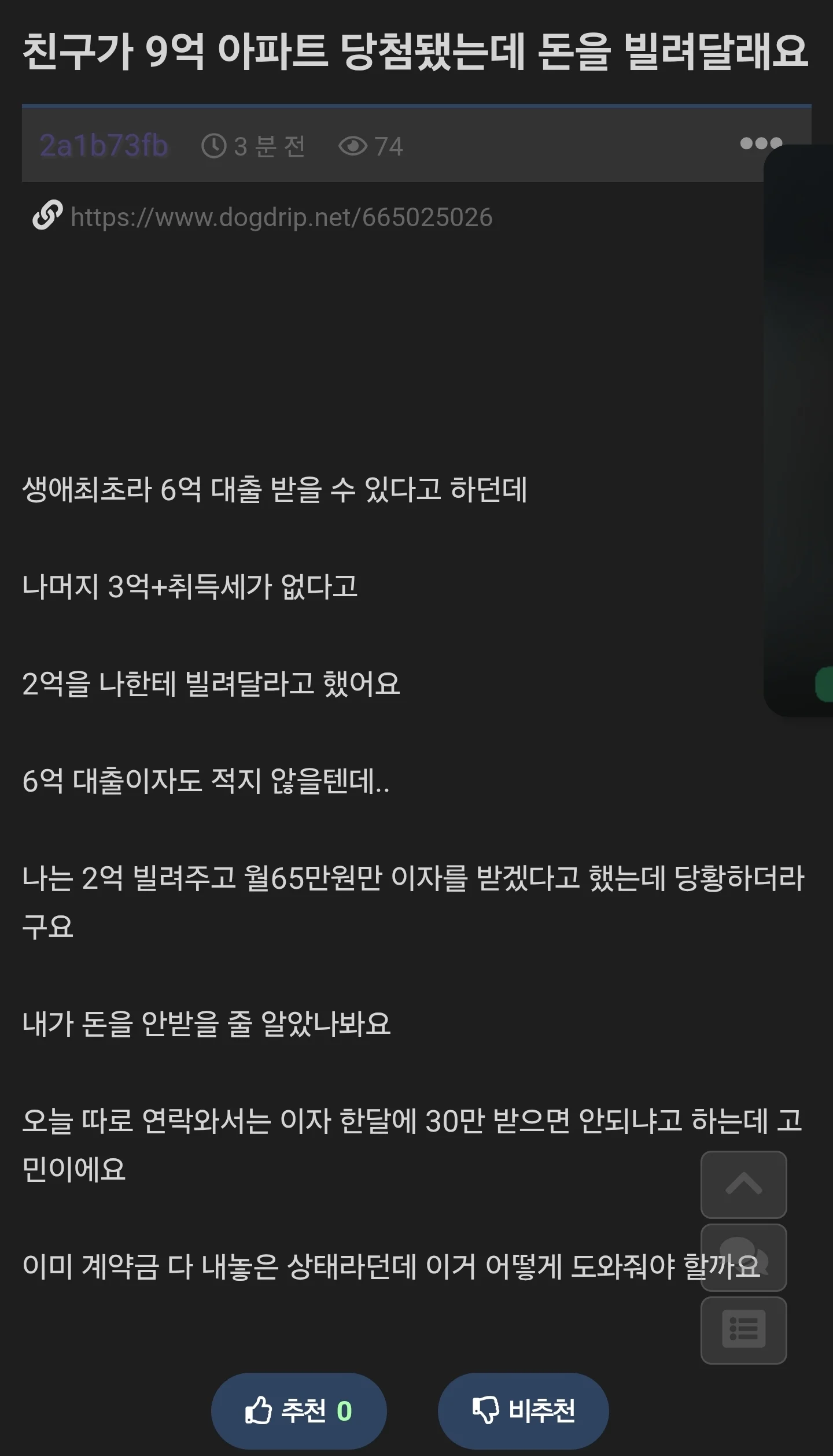 친구가 9억 아파크 당첨됐는데 돈을 빌려달래요