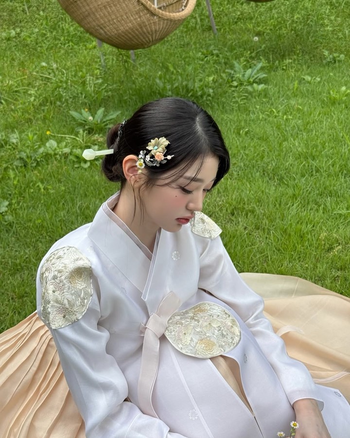 사진에는 이달 말 경주에서 진행될 ‘2025 아시아태평양경제협력체(APEC) 정상회의’ 홍보 영상 촬영 속 모습이 담겼다. 아이보리 색상의 한복과 섬세한 자수가 들어간 배자, 은은한 치마가 어우러져 단정한 분위기를 자아냈다.