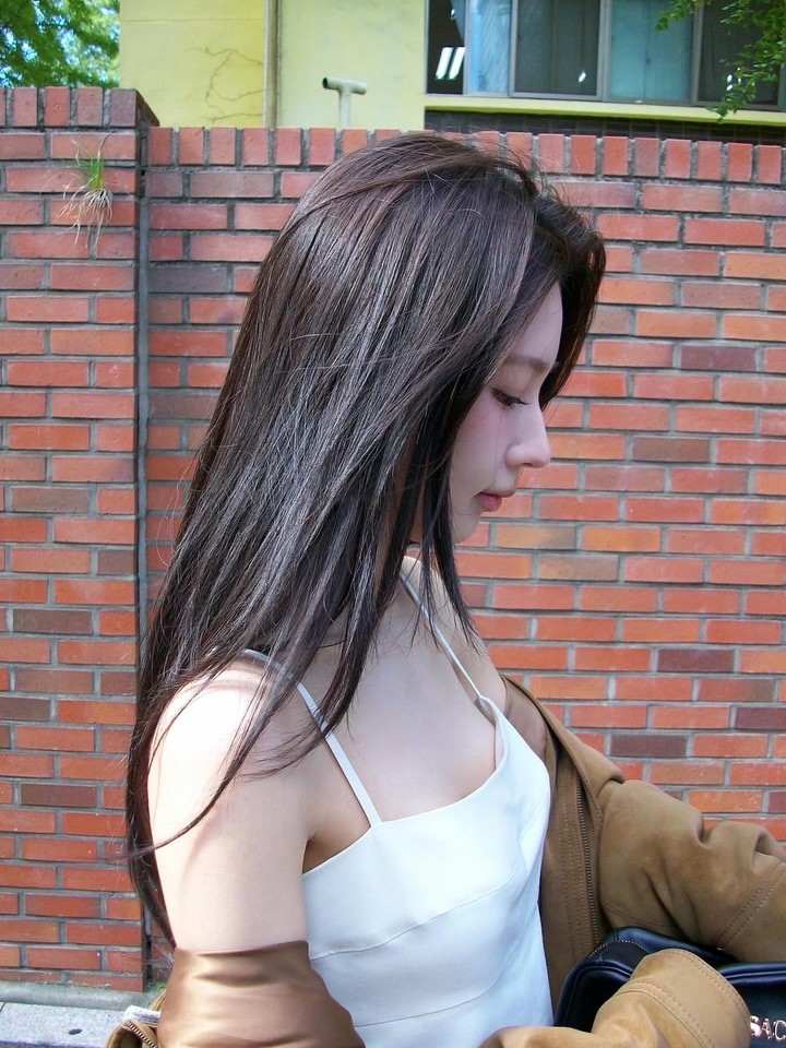 붉은 벽돌길과 푸른 나무가 어우러진 배경은 영화처럼 신비로운 무드를 더했다. 미연의 옆모습, 뒷모습에서 단정하고 우아한 분위기가 느껴졌다.