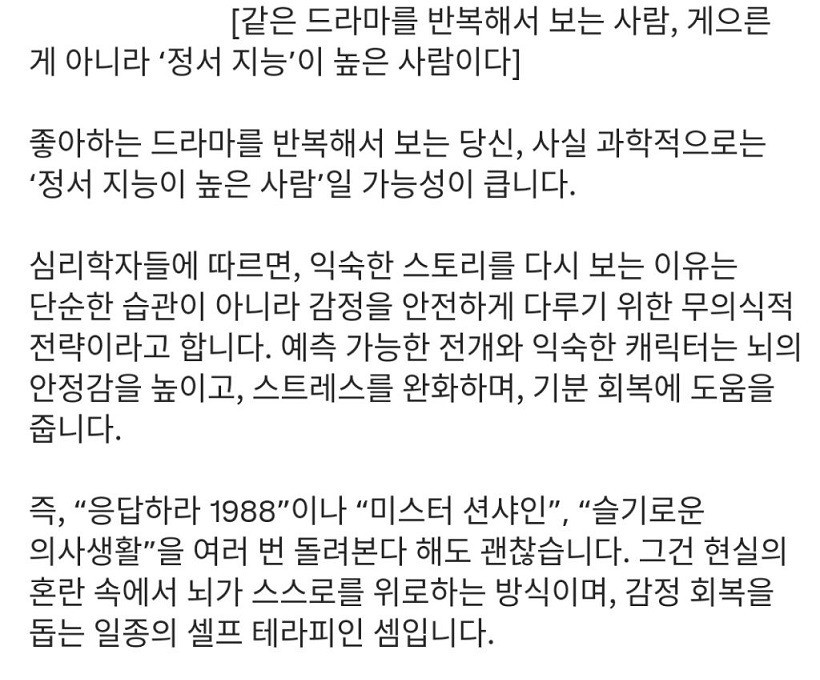 같은 드라마 또 보는 사람 ..... 정서 지능이 높은 사람