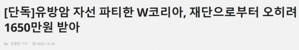 [단독]유방암 자선 파티한 W코리아, 재단으로부터 오히려 1650만원 받아 ITZY 유나가 장카설 압도하는 것문신에 대한 윤서인 생각쯔양이 화장실 한 번 갈때마다 벌어지는 일이정재가 영화 <암살> 캐스팅 거절했던 이유2025년 여자아이돌 국내 콘서트 매출 순위