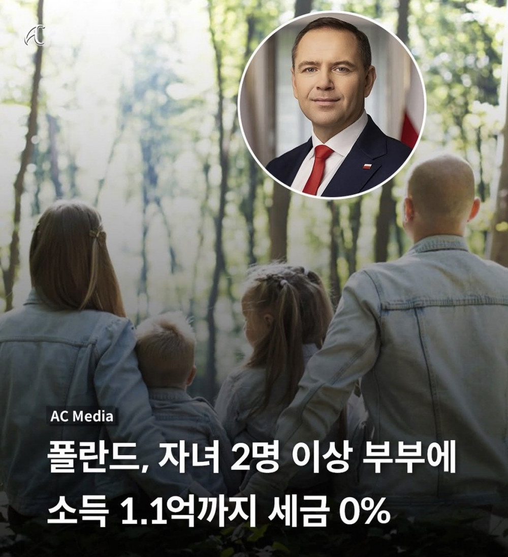 폴란드, 자녀 2명 이상 부부에 소득 1.1억까지 세금 0%