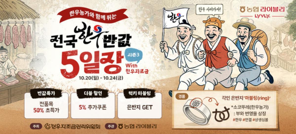 축산물 전문 온라인 쇼핑몰인 농협라이블리는 한우자조금관리위원회와 손잡고 지난20일부터 오는 24일 금요일까지 단 5일간 ‘전국 한우 반값 5일장’을 진행한다.