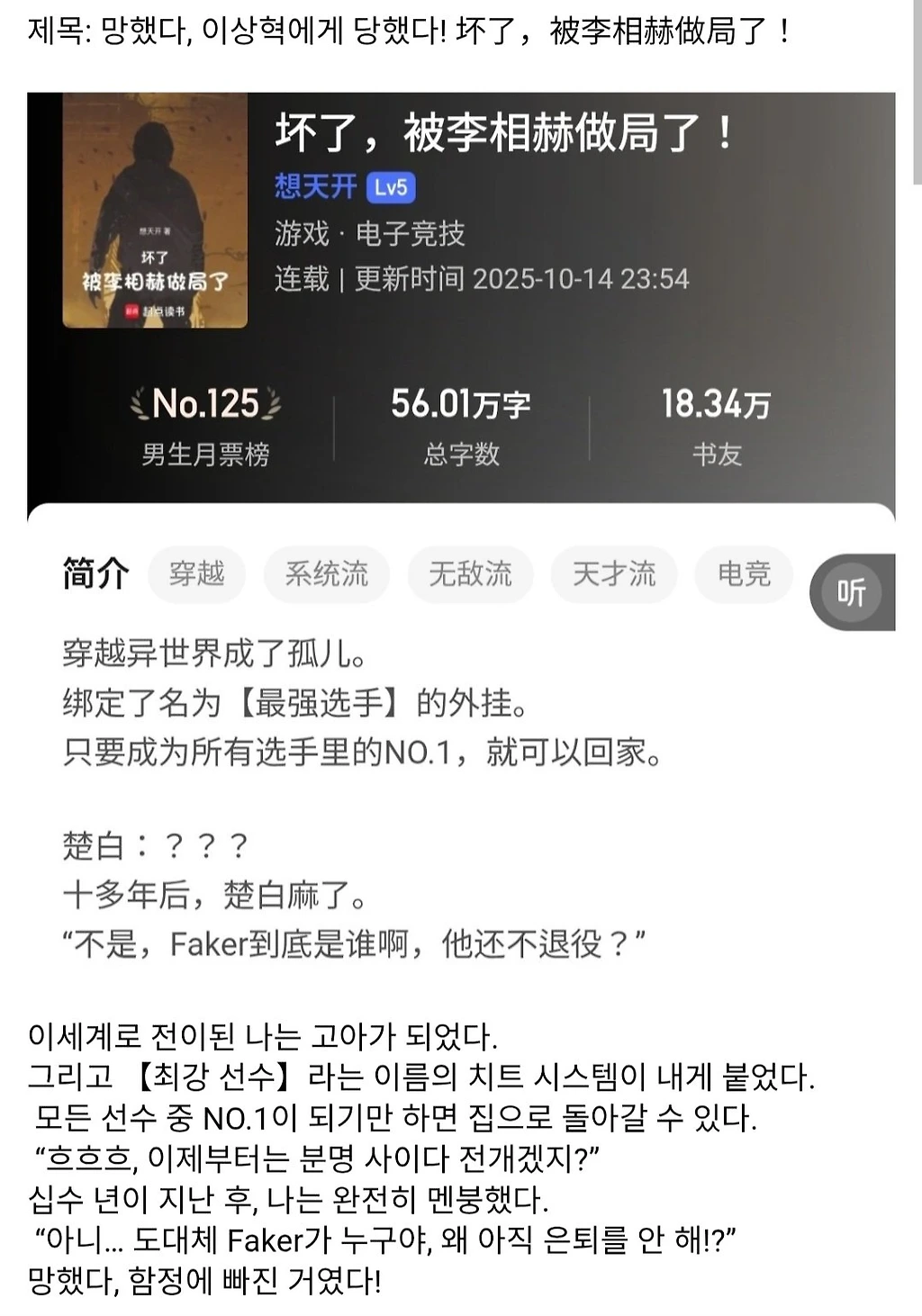 요즘 중국 웹소설 근황
