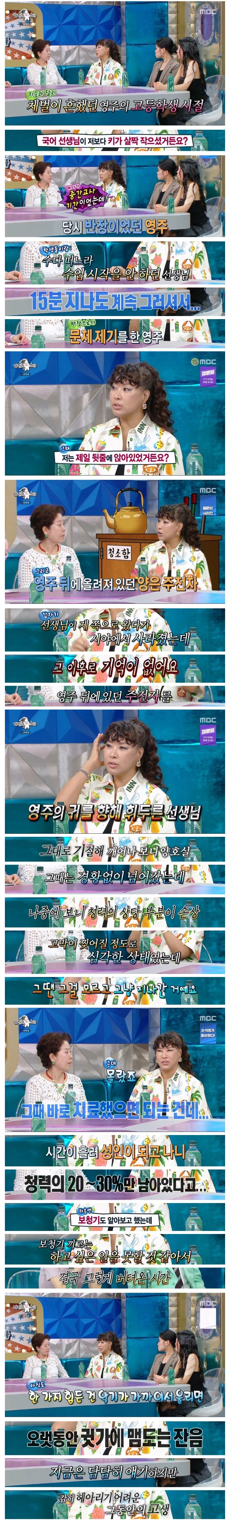 학창시절 선생한테 맞아서 고막이 나갔던 여배우