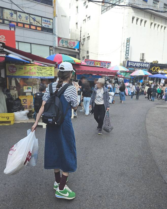 성유리, 시장 골목에서도 빛나는 꾸안꾸의 정석