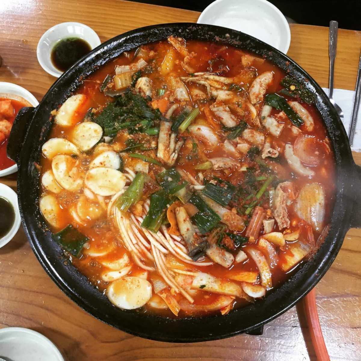 진한 국물의 양 곱창전골을 맛볼 수 있는 부산 ‘대정양곱창’. 부산 남포동에서는 소문난 맛집으로 부산 사람들뿐만 아니라 여행객들의 마음까지 모두 사로잡은 맛집이다. 빨간 국물이 매력적인 양 곱창전골은 당면과 양, 대창 등이 들어가 진한 국물을 뽐낸다. 구웠을 때 보다 한층 더 쫄깃해진 양 곱창은 국물과 함께 먹으면 식감과 함께 고소한 맛도 한층 더 살아난다. 또한 이 집은 야외에 테이블이 있어 야외에서 먹는 것도 가능하기 때문에 야장바이브를 느끼며 진한 국물의 전골을 곁들이면 다른 안주가 필요 없이 소주를 술술 부른다.