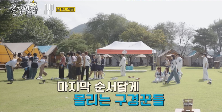 22일 방송된 tvN ‘출장 십오야 X JYP 스카우트’(이하 ‘JYP 스카우트’) 1회에서는 박진영을 비롯해 트와이스, 스트레이키즈, 2PM, ITZY, DAY6, NMIXX, 엑스디너리 히어로즈, NiziU, NEXZ, 킥플립 등 JYP를 대표하는 11팀, 총 40명이 함께했다.