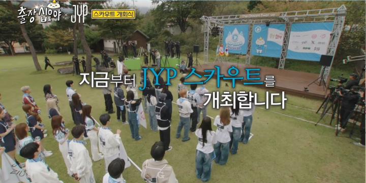 이 자리에서는 JYP의 대표 프로듀서 박진영과 킥플립의 케이주가 단상에 올라 사훈인 진실, 성실, 겸손이 담긴 스카우트 선서문을 낭독했다. 케이주가 전하는 힘찬 구호는 분위기를 더욱 고조시켰다.