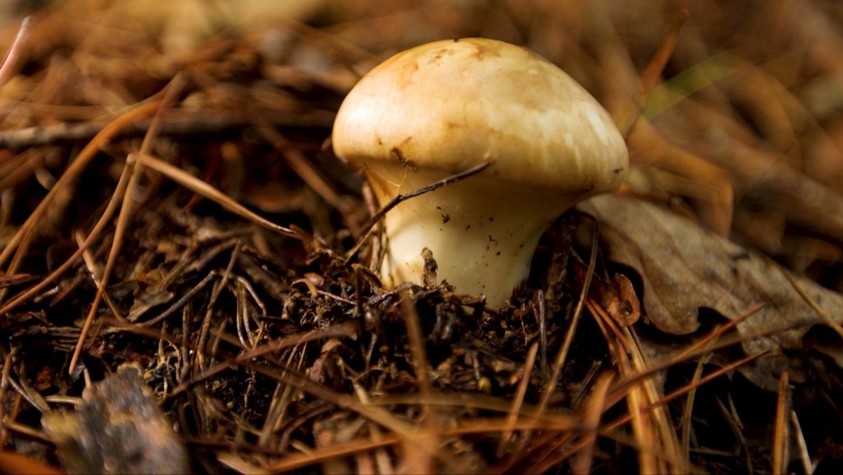 비가 멈추기만을 기다려 며칠째 같은 길을 오르기를 반복한 끝에—드디어! 땅속에 숨은 송이가 슬쩍 모습을 드러낸다.