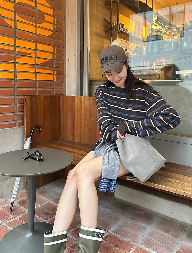 특히 시선을 끄는 건 발끝의 카키색 셀린 레인부츠.