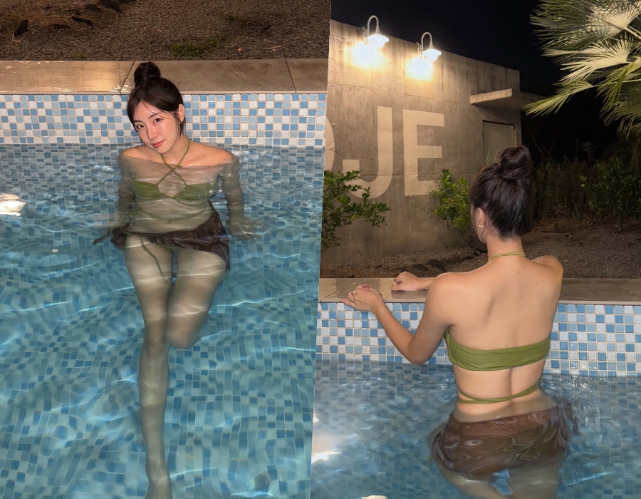사진 속 안지현은 제주의 한 펜션을 찾아 여유로운 시간을 보내는 모습이다. 특히 그는 펜션에 갖춰진 풀장에 몸을 담그고 있는 모습으로 자연과 어우러지는 녹색의 비키니 수영복을 입고 있어 눈길을 끌었다.