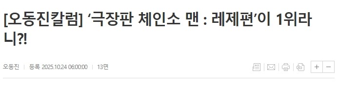 [오동진칼럼] ‘극장판 체인소 맨 : 레제편’이 1위라니?! 억대 연봉 김앤장 변호사의 업무 강도 ㄷㄷ영화 고질라에 나오는 문제의 장면코요테가 무려 22년동안 멤버교체없이 유지할수 있던 이유'이이경 루머 유포' 사과하더니.. 돌연 입장 번복14년만에 종영 소식 나온 음악 방송
