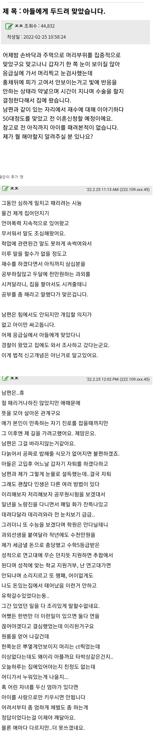 아들에게 두드려 맞았습니다.