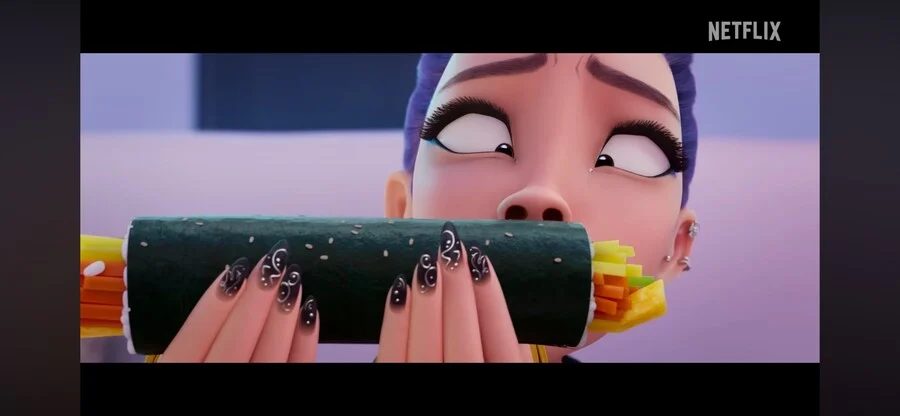 케데헌은 근본적으로 재미교포들 스탭진이 주가 되서 만들어진 애니인데, 서양권에서 김밥은 전통적으로(그러니깐 K-POP이 알려지기 전) 참기름 냄새 때문에 호불호가 엄청 갈리던 음식이었다. 그러다보니 교포들이 애들 소풍갈때 한국에서처럼 김밥을 싸다주면 참기름냄새난다고 양놈 애들이 놀리기도 했다고 한다