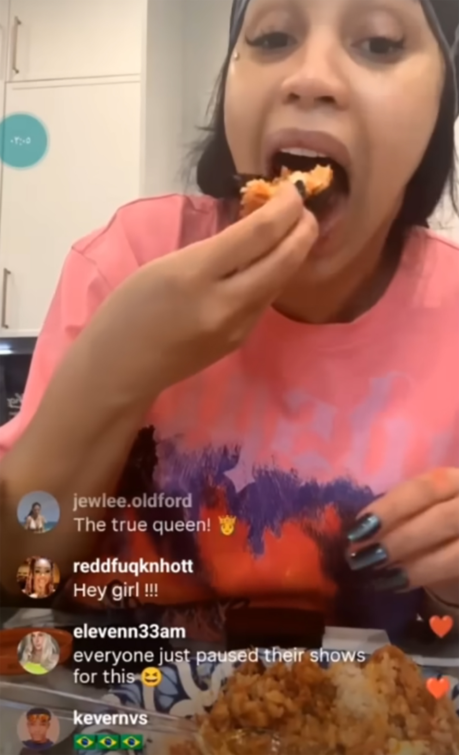 카디 비는 참치 캔을 개봉해 밥 위에 마요네즈를 얹고 김에 싸 먹는 독특한 방식을 선보였다. 그녀가 이 음식을 접한 후 보인 반응은 단순한 호기심을 넘어선 열광이었다. 카디 비의 ‘참치 먹방’은 한국의 메이크업에 이어 K-푸드까지 미국 대중문화에 깊숙이 파고드는 상징적인 사건으로 평가받으며, 한국 캔 참치가 미국 시장에서 의외의 ‘초강세’를 보이는 배경이 되고 있다.