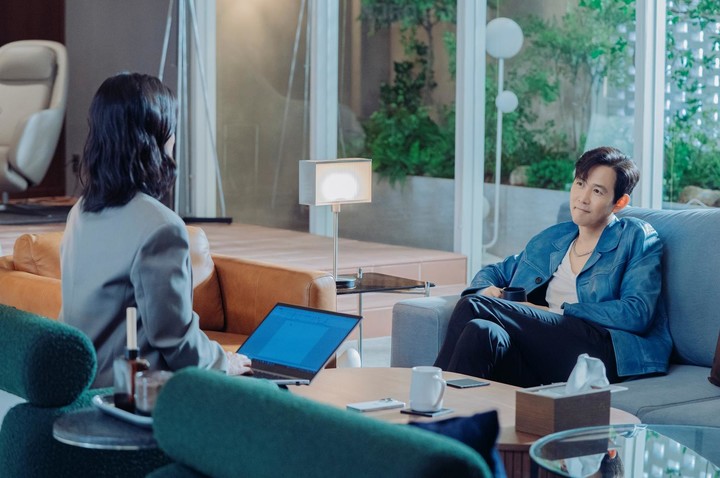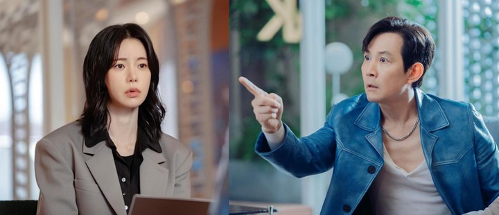 공개된 사진에서는 배우 임현준 역의 이정재와 기자 위정신을 연기하는 임지연의 단독 인터뷰 현장이 담겼다. 임현준은 당황스러운 표정으로 손가락질을 하고, 위정신은 이에 맞선 황당한 모습을 보이며 두 캐릭터의 극명한 성격 차이를 드러냈다.
