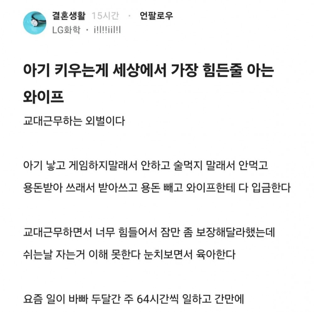 아내 때문에 극심한 스트레스를 받는다는 블라인