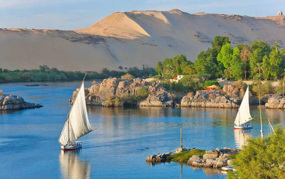 총 길이 약 6,650km에 달하는 세계 최장 강인 나일은 적도 남쪽 여러 지점에서 발원해 북쪽 지중해로 흘러간다. 고대 이집트인들은 매년 범람 후 남기는 검은 토사 때문에 강을 ‘검다’는 뜻의 이름으로 불렀으며, 오늘날에도 강 유역은 이집트 인구의 95%가 모여 사는 생명선이다. 강 주변의 습지와 사막에는 악어, 하마, 다양한 조류가 서식하고 고대 유적이 강을 따라 자리한다.