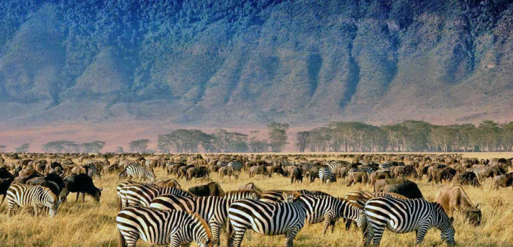 약 200만 년 전 거대한 화산이 붕괴해 형성된 세계 최대의 비활동 칼데라로, 면적은 260km²에 이른다. 이곳은 사자, 하이에나, 하마, 기린, 얼룩말, 멸종위기 검은코뿔소까지 다양한 동물이 사는 거대한 ‘아프리카의 에덴동산’이다. 수 세기 동안 살아온 마사이족도 거주하지만, 보존 문제로 정부와 갈등을 빚고 있다.