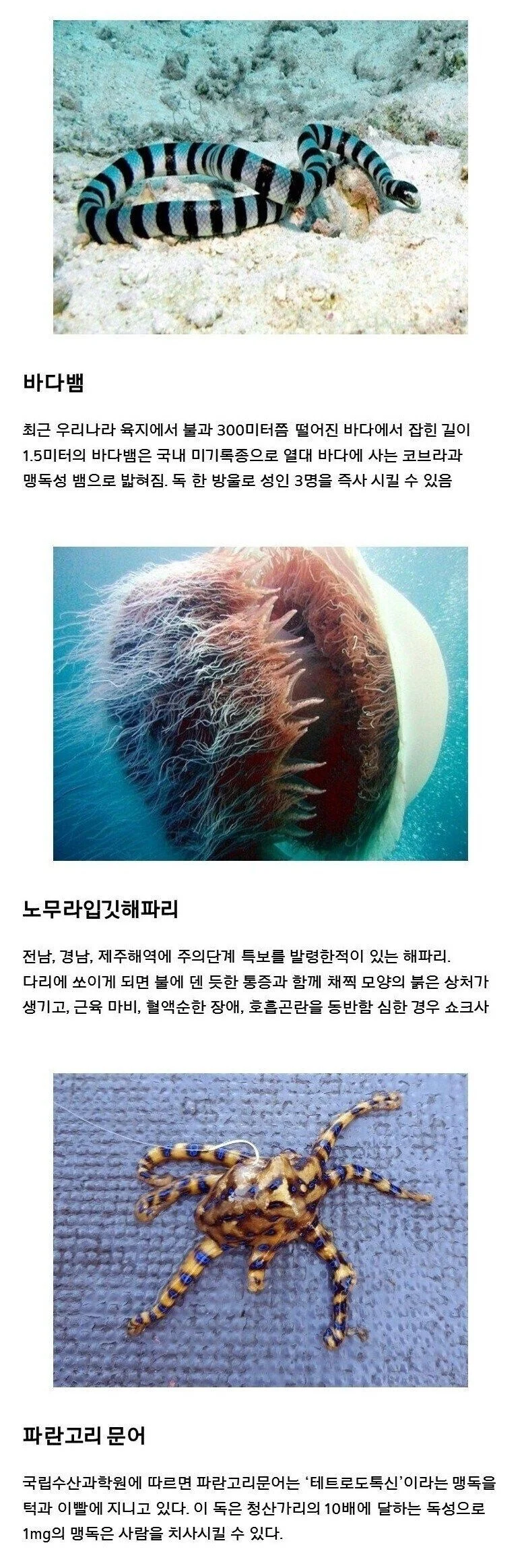 사람을 즉사 시키는 한국 3대 바다생물