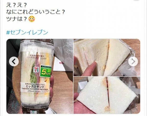 맛있는 햄, 달걀, 참치 믹스 샌드위치인데 참치가 없음