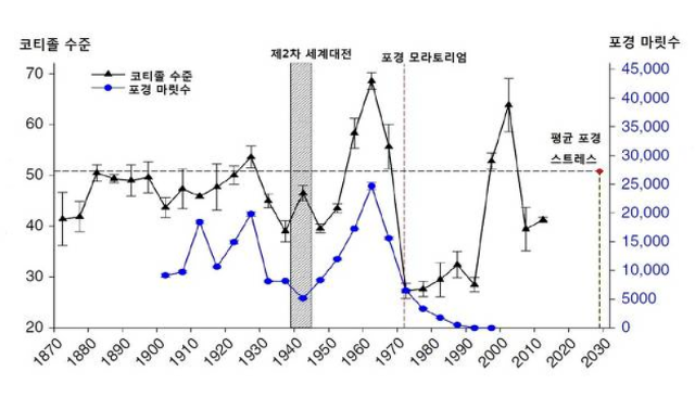 포경이 가장 심했던 1960년대 코르티솔 분비량이 가장 높았고