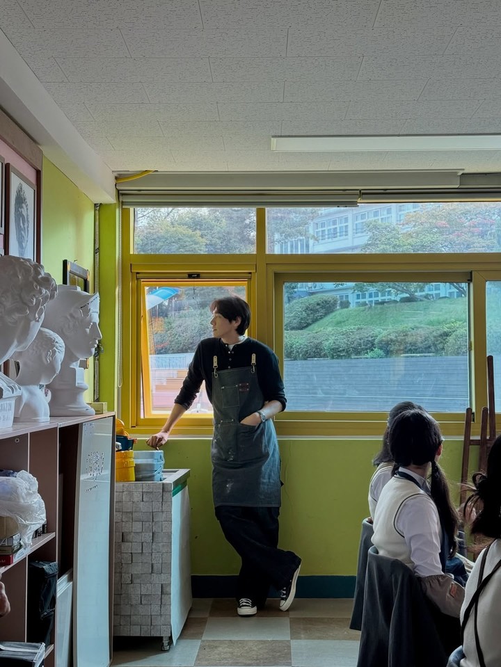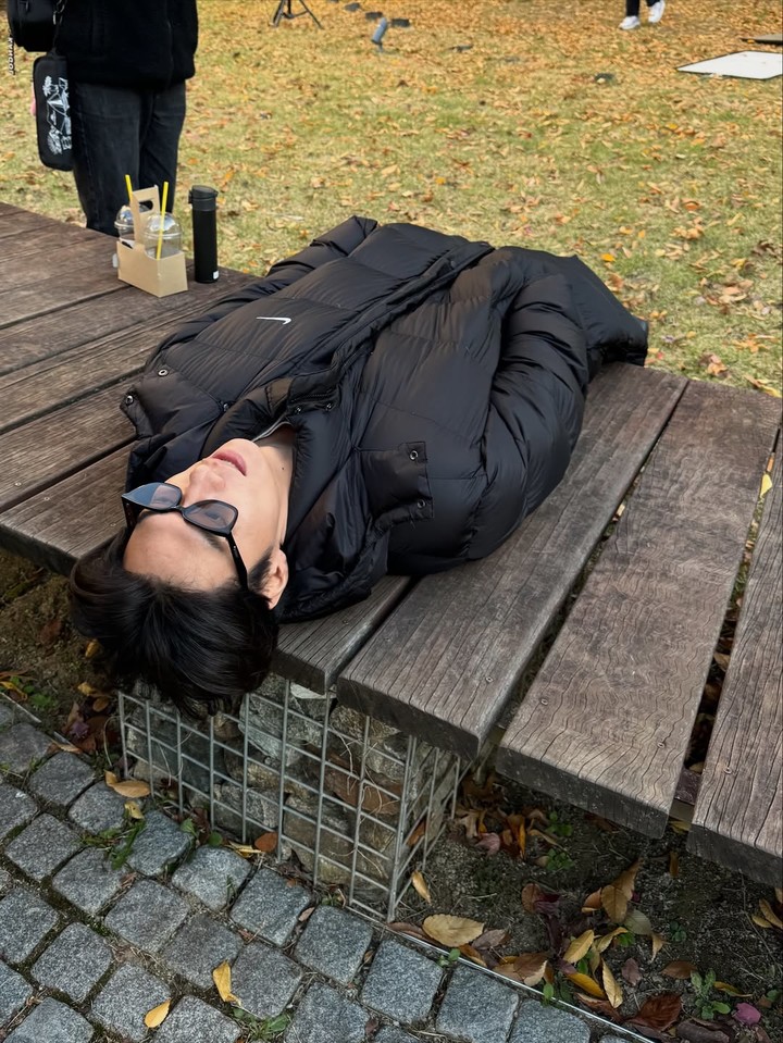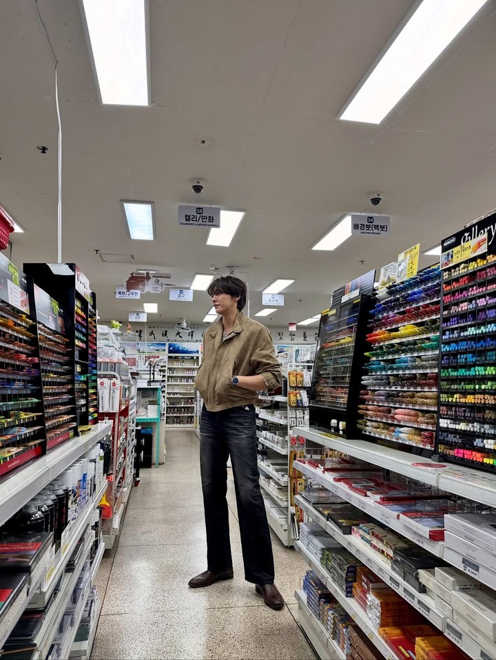 공개된 이미지는 장난스러운 포즈로 벤치에 누운 모습부터 패딩을 입고 여유로운 표정을 지은 순간까지 담겼다. 특별히 문방구 장면에서는 190cm의 키가 마치 다리를 포토샵으로 늘린 것처럼 시선을 끌었다.