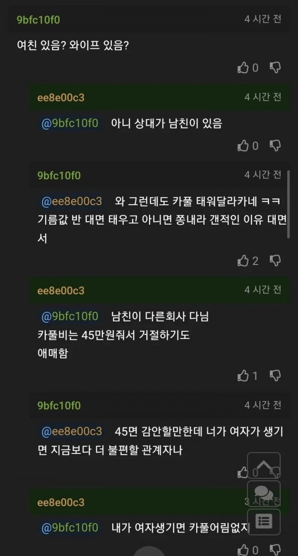 여자한테 흑심은 있는데 카풀비 45만원은 쫀득하게 받고 있음 여자가 기름값(30)+ 15만원 더 주는 중 일본 난치병 어린이가 한국어를 배우는 이유인류 게임 역사에 한 획을 그은 한국 게임배달 기사들한테 공지하는 식당 사장님페미활동 열심히 했지만 결혼한 여자바람피워 이혼한 엄마한테 결혼연락을 해야하는지 고민