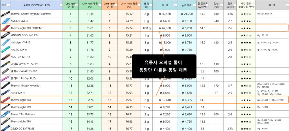 위에 표를보면 순위는 2위인데 g당 가격이 말도 안됌