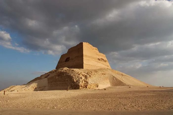 이집트 고왕국 제4왕조 스네페루 파라오 시대에 계단식에서 경사진 피라미드로의 전환을 시도했으나, 외벽 붕괴로 인해 현재는 중앙부만 3층 탑처럼 남아있는 '실패한 피라미드'이다.
