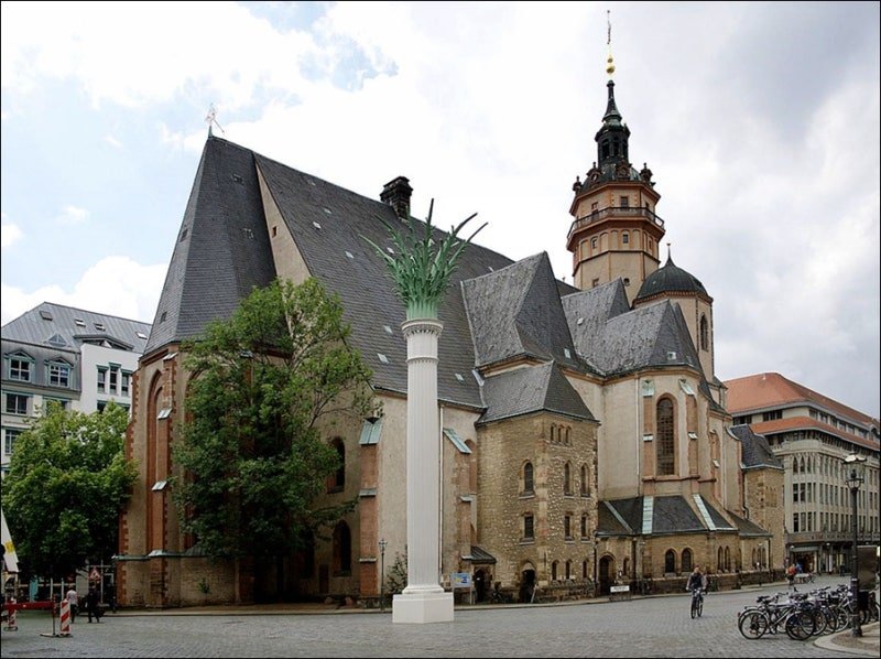 라이프취히에 위치하며 1989년 동독 공산 정권의 몰락과 독일 통일을 이끈 비폭력 '평화 혁명'의 성지로, 종려나무 기둥 장식과 바흐의 음악으로도 유명한 라이프치히의 역사적 중심 교회이다.