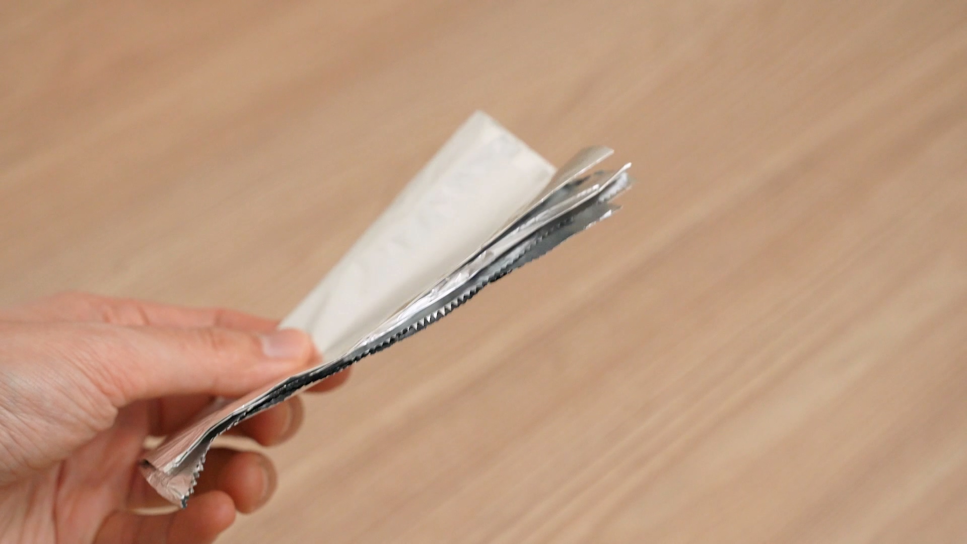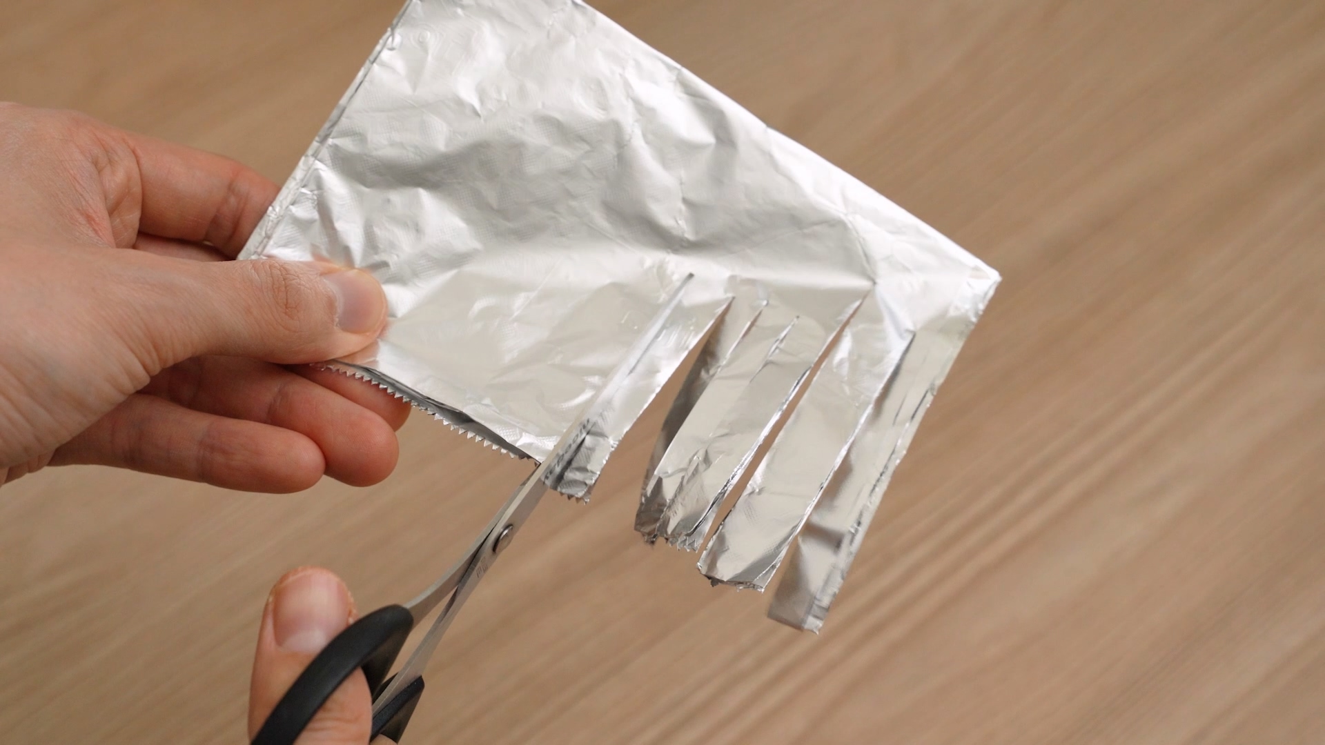 이후 잘 들지 않는 가위로 호일을 잘라 주세요. 이 과정을 거치고 나면 가위날이 평소 보다 날카로워 지는 것을 볼실 수 있어요.