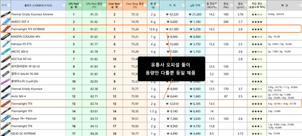 CPU 위에 발라서 쿨러와의 열교환을 잘하게 해주는 실리콘 비스무리한거라고 보면 됌