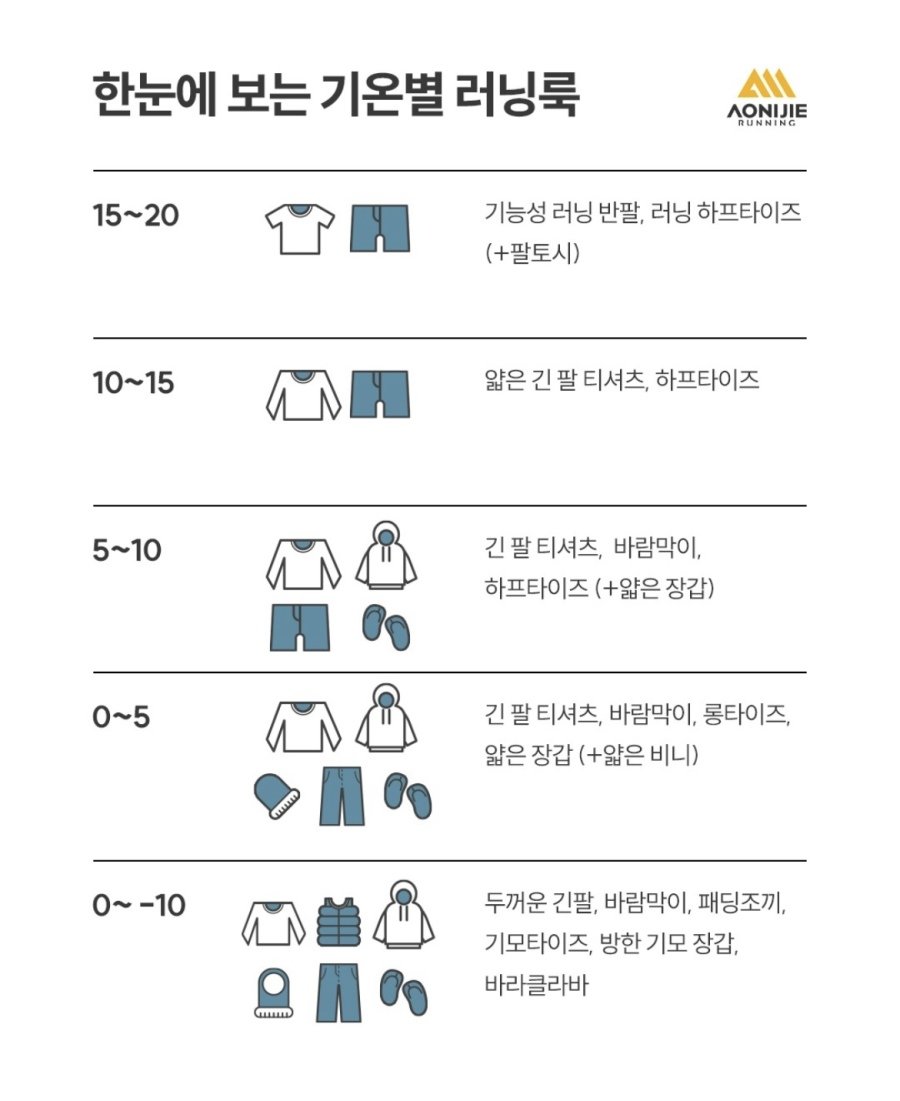 한눈에 보는 기온별 러닝룩