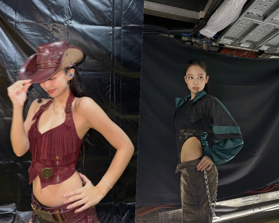 공개된 사진 속 제니는 블랙 레이스 보디슈트부터 미니 스커트, 버건디 프린지 톱과 카우보이햇 등으로 다채로운 무드의 패션을 완벽히 소화했다. 과감한 컷아웃 디자인과 탄탄한 보디라인, 특유의 카리스마 넘치는 눈빛이 어우러지며 시선을 사로잡았다. 특히 ‘BLACKPINK’ 로고가 새겨진 미니스커트 룩에서는 제니 특유의 자신감과 에너지가 고스란히 느껴진다.