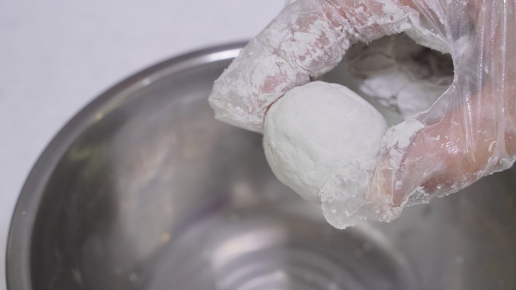 섞을 때 처음에는 1회용 나무젓가락 등으로 잘 저어 준 다음 비닐 장갑을 끼고 조물조물 해주면 잘 뭉쳐져요.