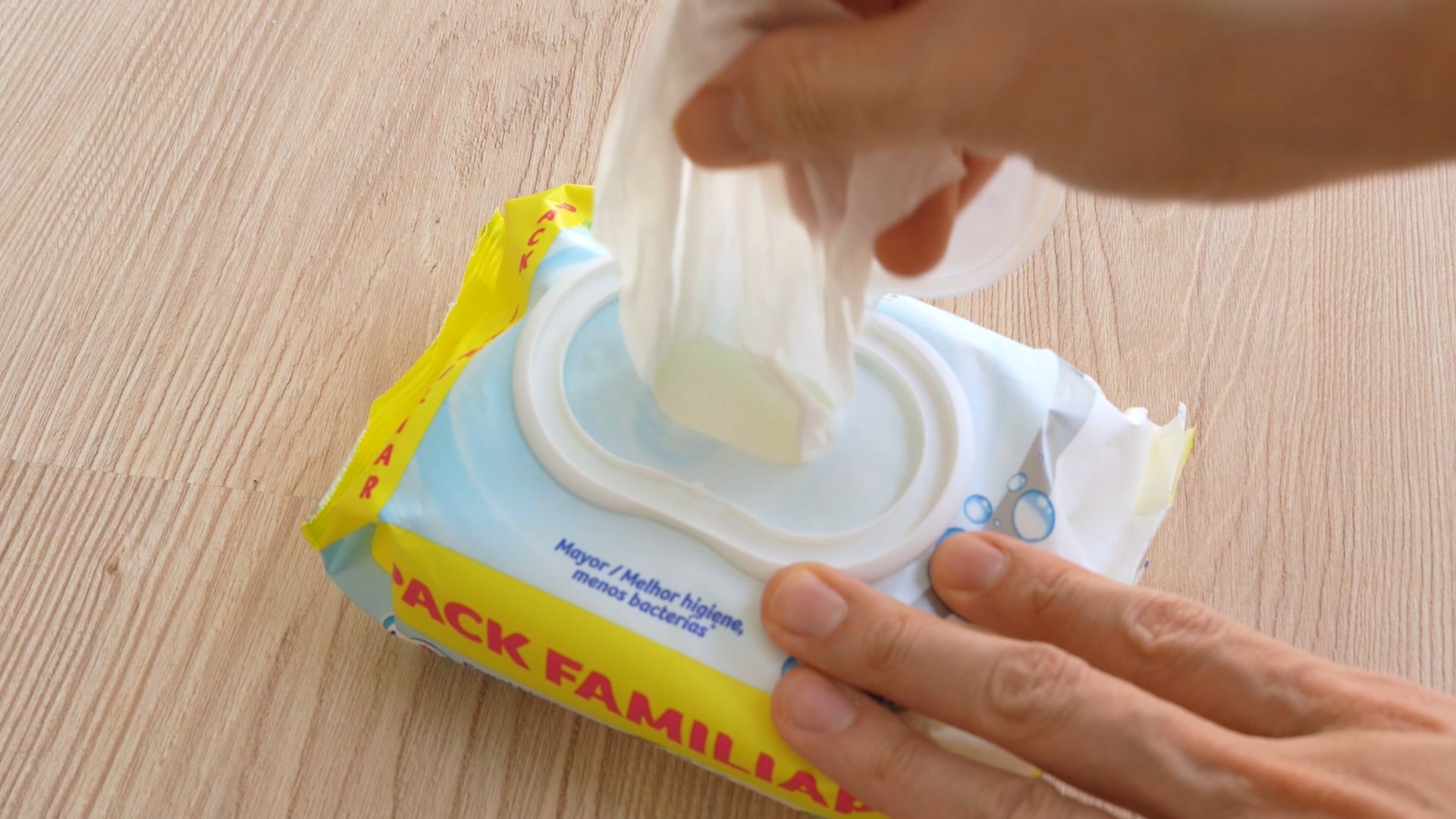 물티슈 한장씩 나오게 하는 방법은 간단하답니다. 먼저 바깥쪽 부분을 손으로 잡아 주세요. 그리고 티슈를 잡아 당기면 한장씩만 쏙쏙 빠져나오는 모습을 보실 수 있을 거에요. 만약 손으로 잡는 것이 싫은 분은 아래처럼 해주세요.