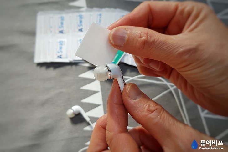바로! 이어폰이에요. 집에 아무데나 굴러다니고 바닥에도 놓고 여기저기 가지고 다니는 특성상 떼가 잘타기도 하는데요. 알콜스왑 하나면 마법이~