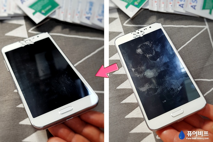 한번 닦아보면 물로 닦는 것과는 차원이 달라요 ㅋ 액정 커버 붙일 때 알콜스왑을 주는 이유가 있는 것 같아요! 다음은