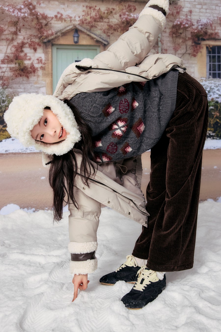 공개된 화보와 영상 속 손나은은 고급스러운 광택감이 도는 패딩 점퍼와 플라워 패턴 배색 니트 그리고 와이드핏의 코듀로이 팬츠를 매치해 포근한 겨울 코디를 선보였다.