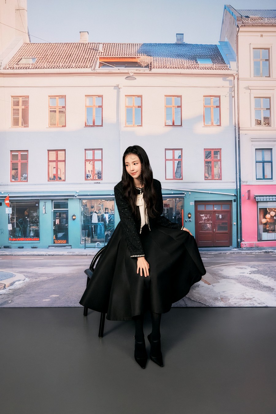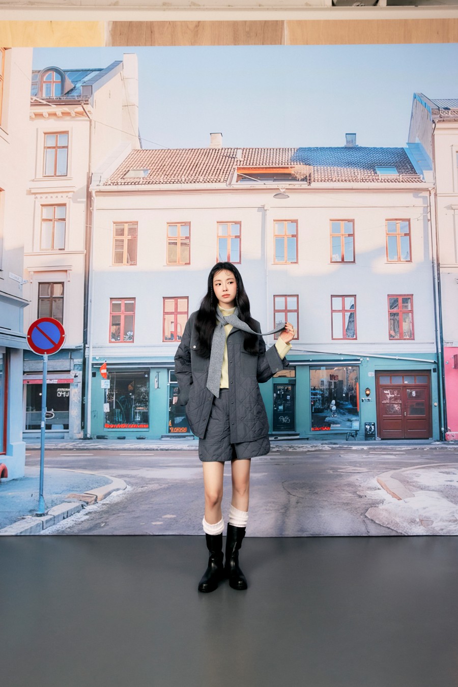 페미닌하면서도 클래식한 무드의 핸드메이드 재킷과 그래픽 니트 베스트, 베이직한 디자인의 하프 팬츠를 착용해 귀여운 스타일을 완벽 소화했다. 이 외에도 고급스러운 분위기를 자아내는 원피스 재킷 세트부터 유니크한 디테일의 퀼팅 오버핏 재킷과 숏팬츠 셋업 코디, 미니멀한 스타일의 테일러드 코트 그리고 청아한 분위기의 재킷 & 스커트 셋업 코디 등 다채롭게 선보였다.